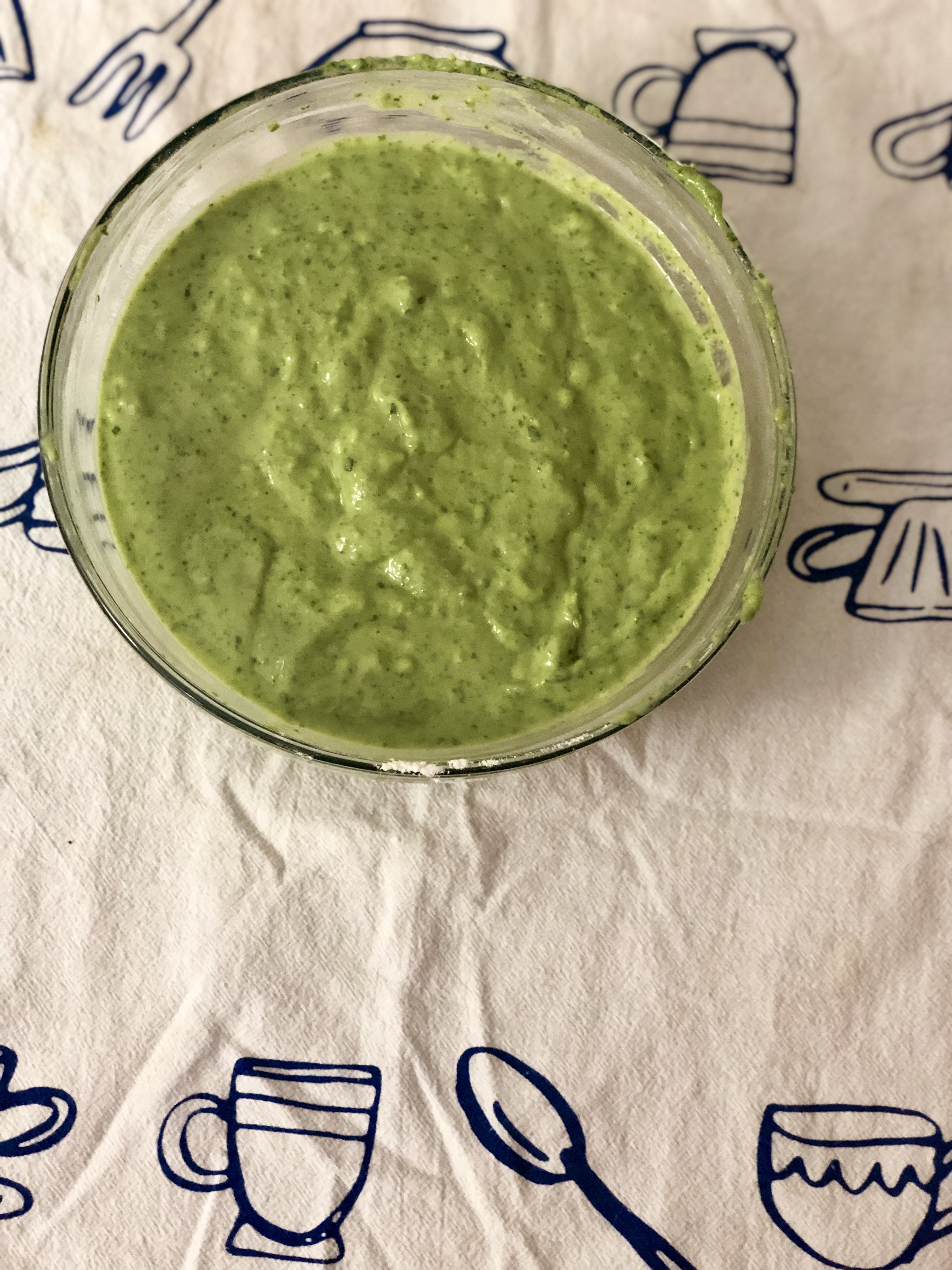 - Using a chopper/blender, chop/blend the kale spinach with some water. We are looking for a runny consistency. Halfway through, add in the maple syrup to the spinach and kale mix.