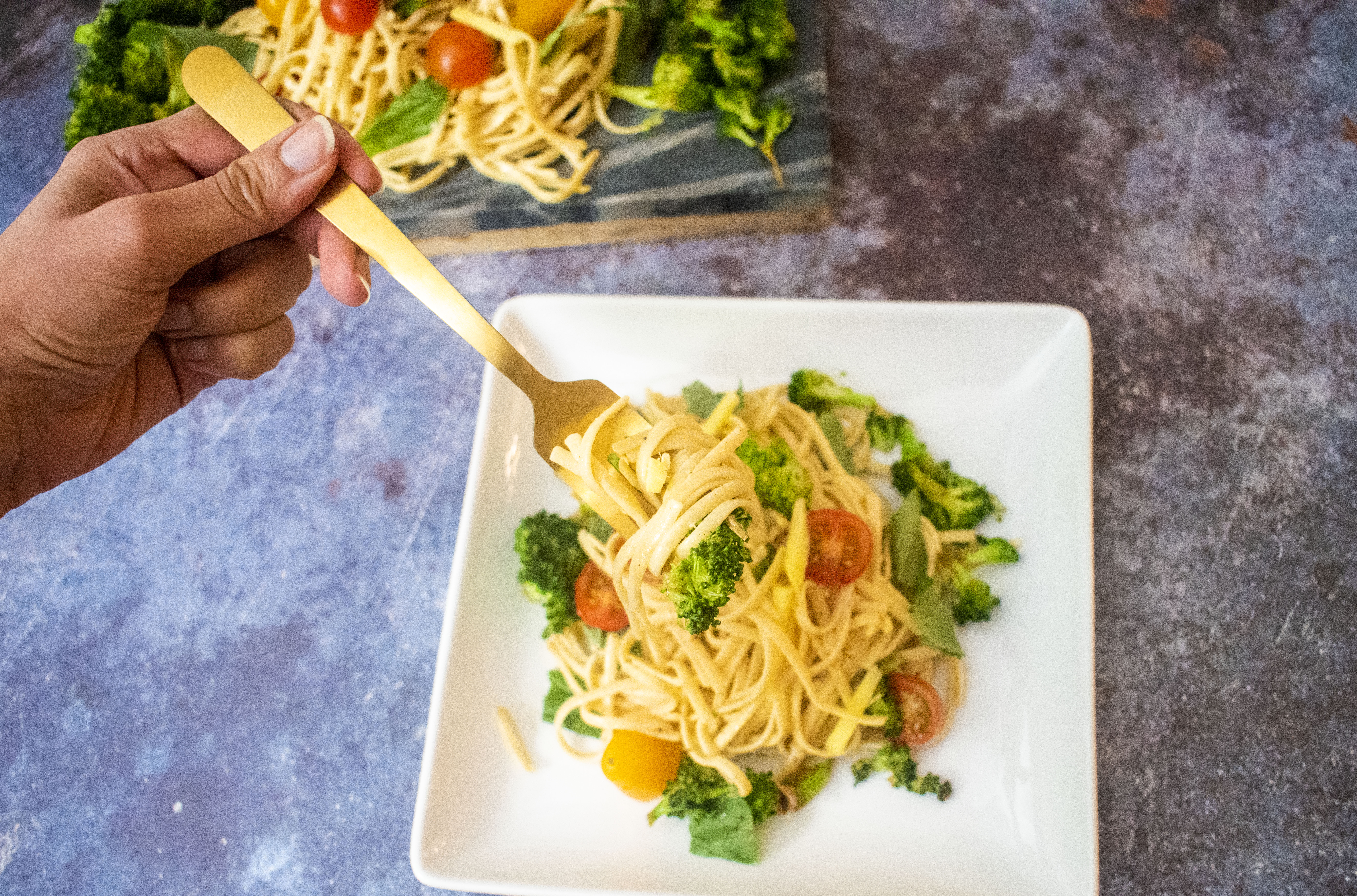 Recipes that come out of foraging the fridge are MY favorite! A couple of Fridays ago, husband and I were being lazy to go out for dinner and mind you, Friday dinners are almost always reserved for pizza or south-indian food. “Kitchen is closed tonight” is what my husband says when he’s back from work on every Friday. But this particular Friday felt different to me. I wanted a no fuss no muss kinda meal in pajamas. Those one pot pan ones? It just so happened that when I took the first bite that I thought “this has to go up the blog!” I broke the broccoli florets with my hand and just tossed them with the leftover ginger piece on the counter since I was making some chai for my husband. All together it doesn’t take more than 20 -25 minutes.