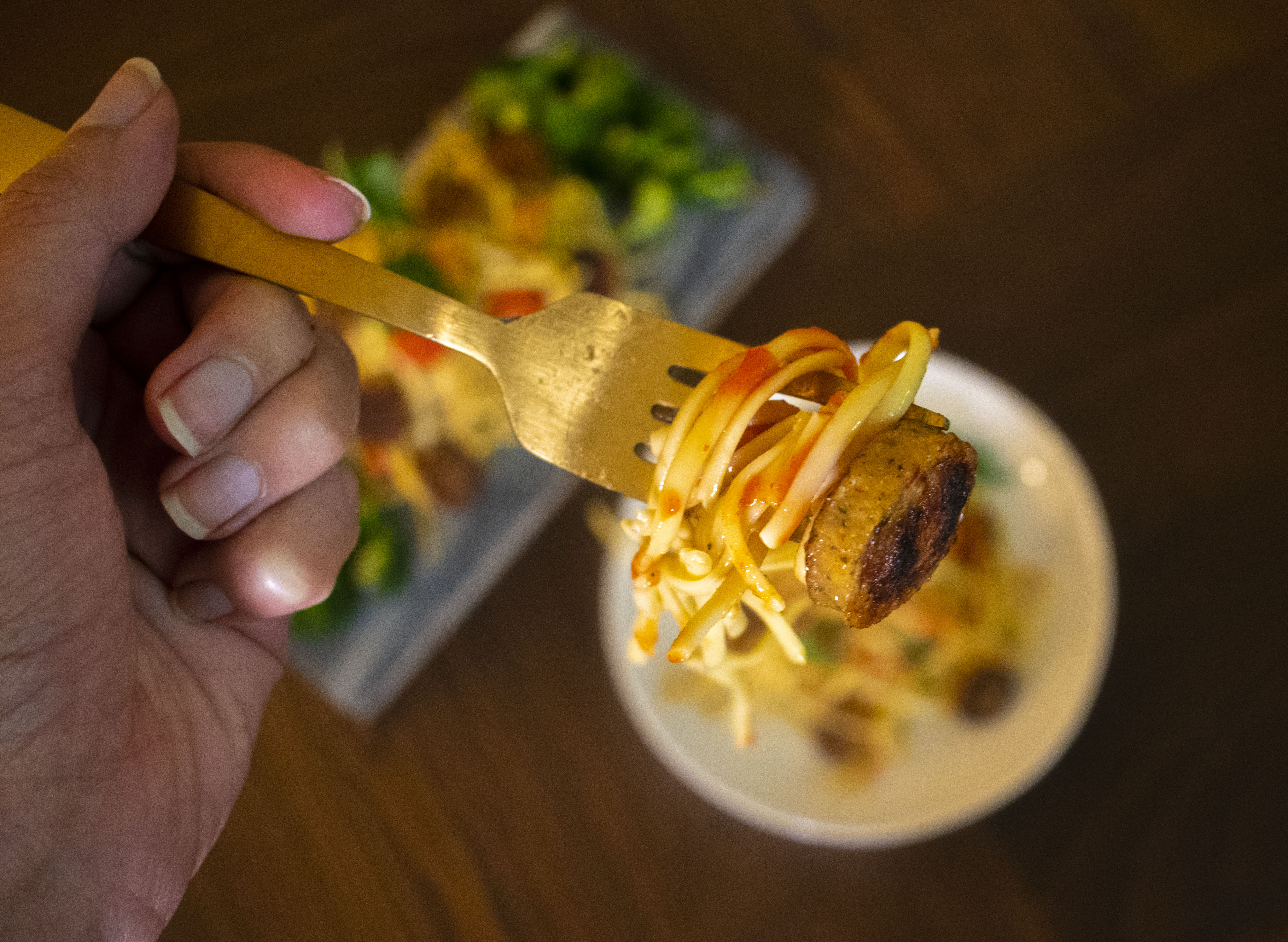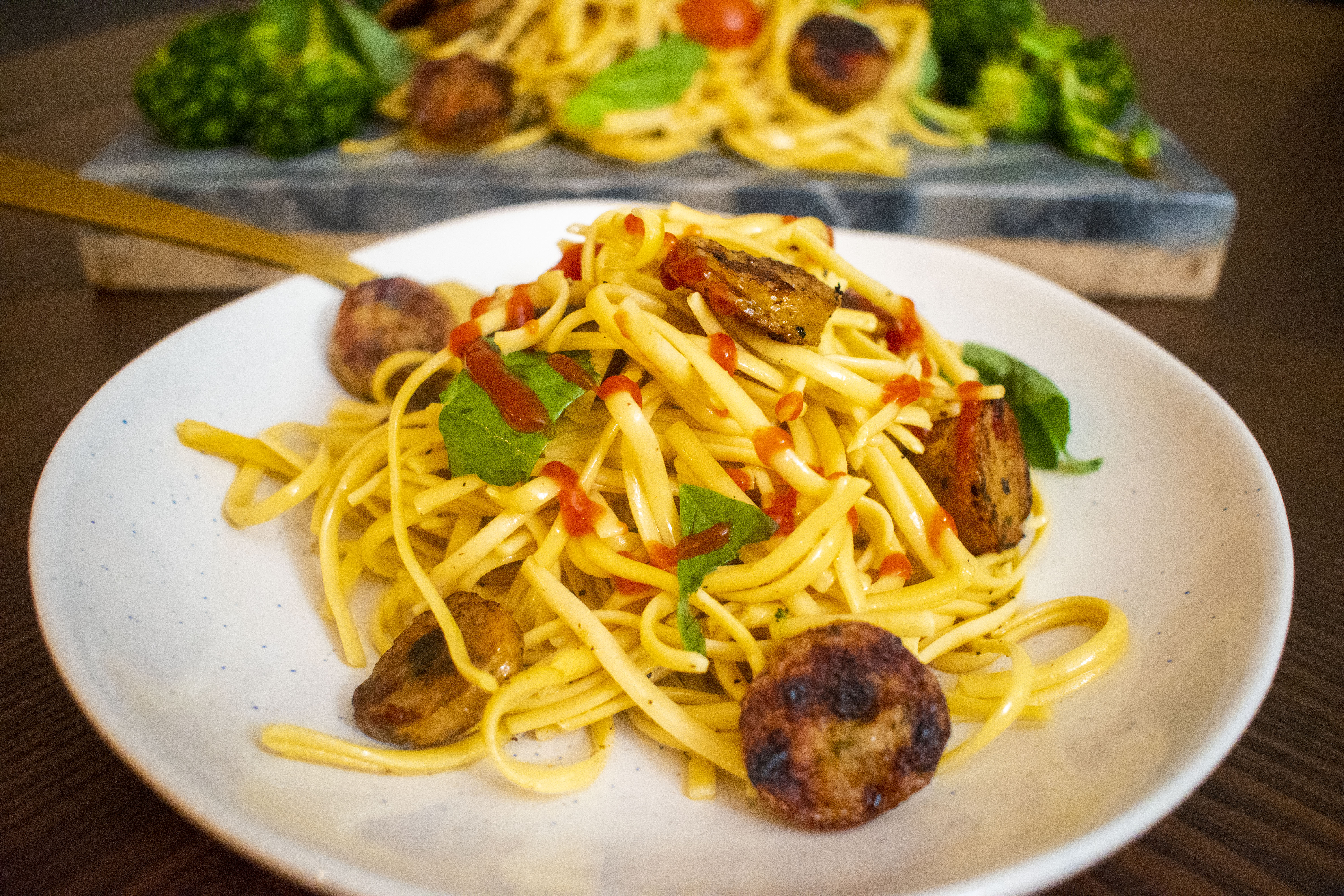 - Chop the broccoli florets into medium sized bites. If you don’t have sausage handy, feel free to substitute with mushrooms or tofu