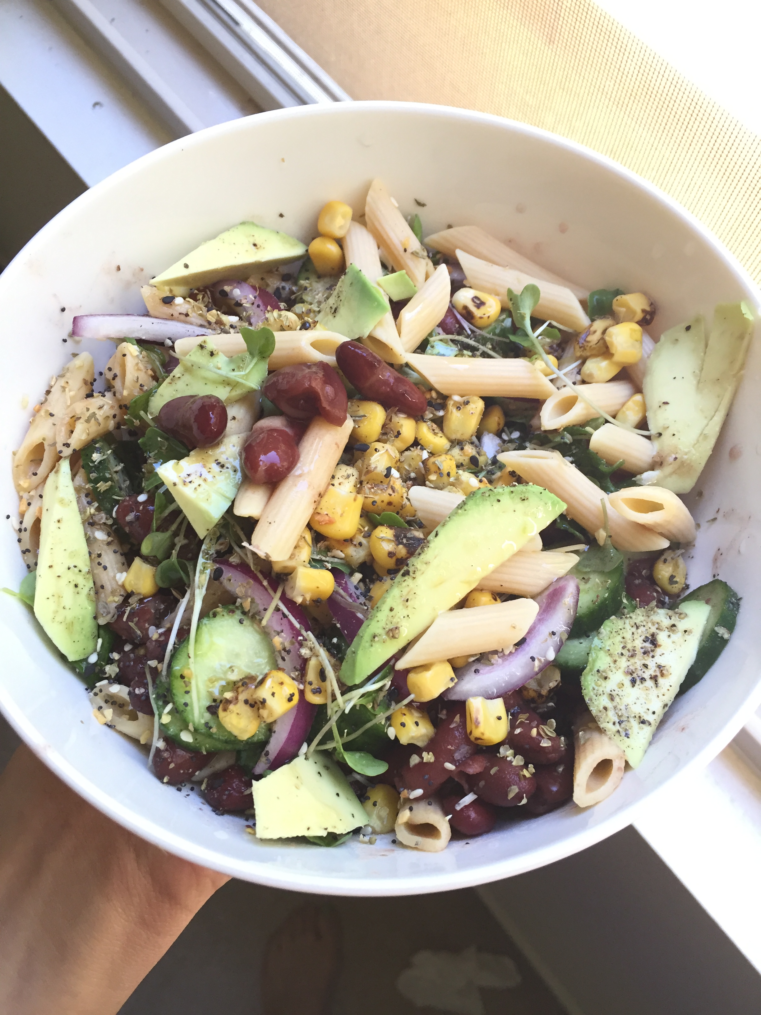 - Toss all the ingredients into the greens bowl.