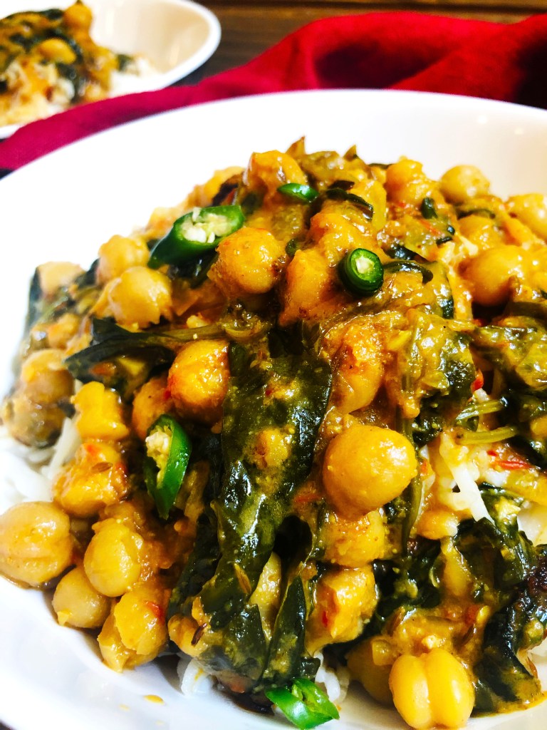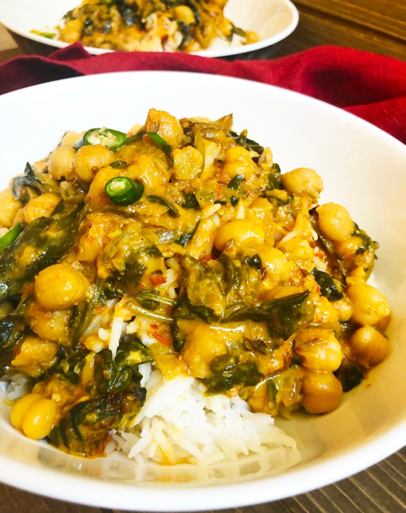 I have made PLENTY of versions of this and I am well aware that everyone’s had some kind of chickpea gravy but believe me, if you have never made chickpeas with coconut milk and spinach.. y’all are missing out!